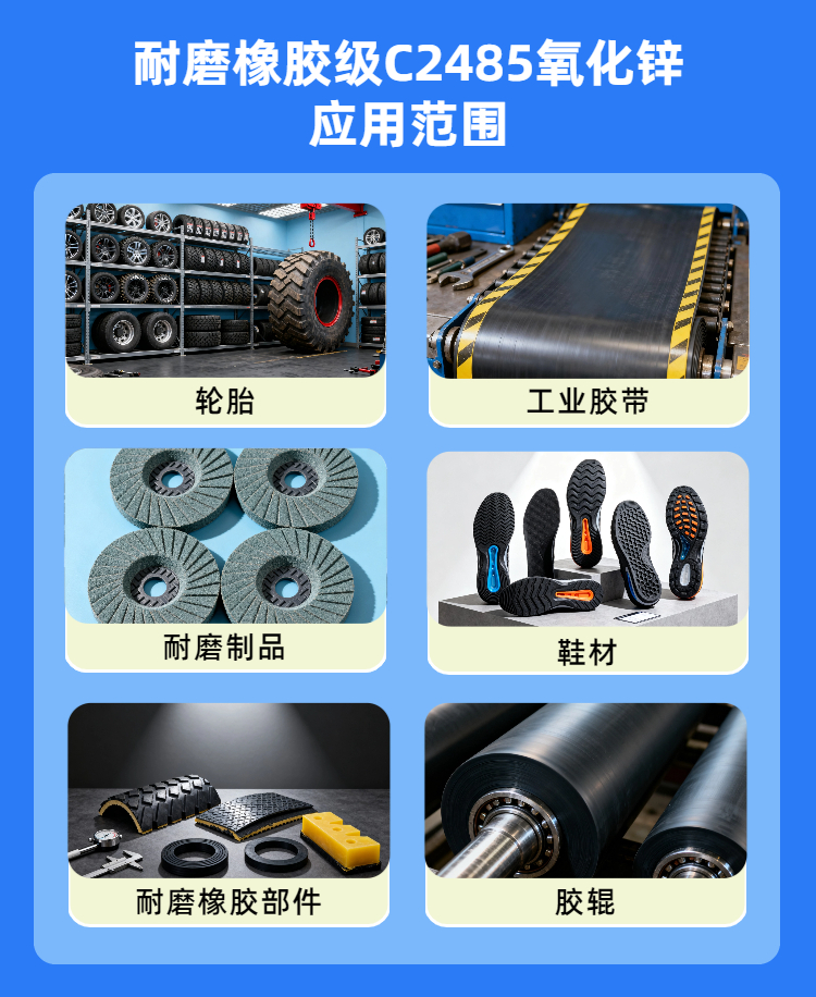 本品為橡膠工業(yè)設(shè)計的高活性氧化鋅,型號C2485,專門用于提升高性能橡膠制品的耐磨性、力學(xué)性能及硫化效率。采用特殊工藝制備,具有高表面活性和良好的分散性,適用于對耐磨性能有較高要求的橡膠制品。